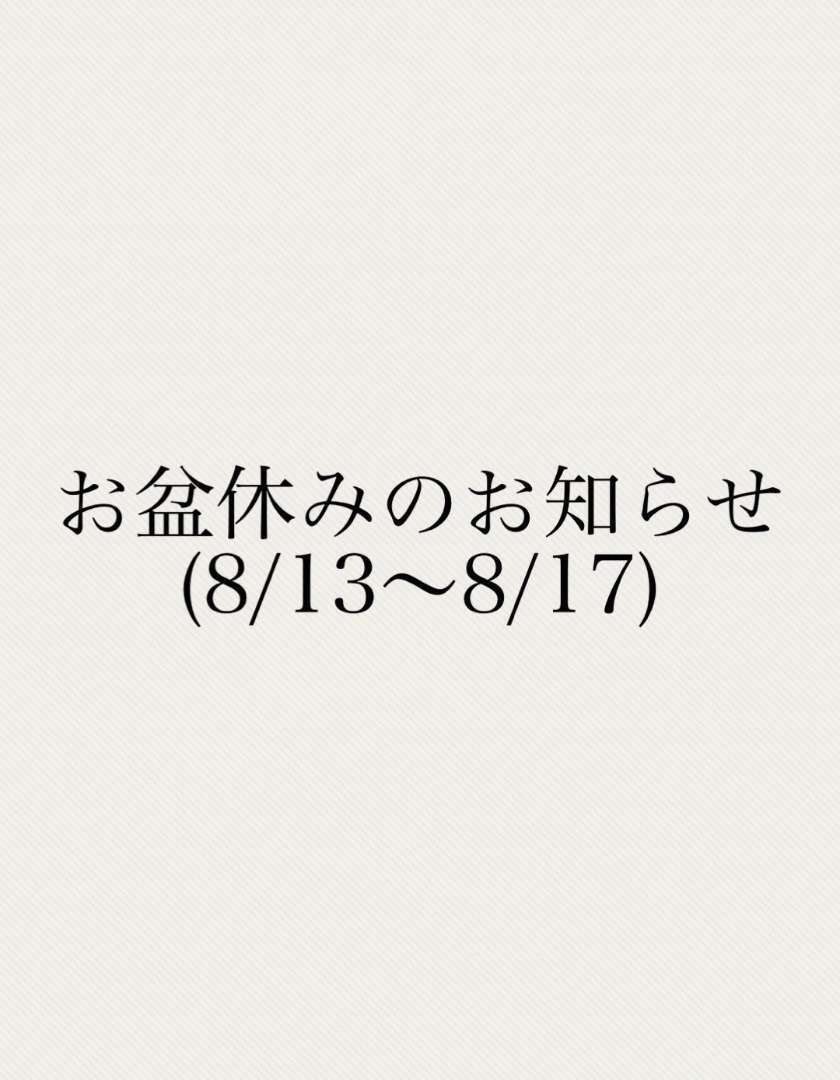 誠に勝手ながら、弊社では下記の期間をお盆休業とさせていただきます。