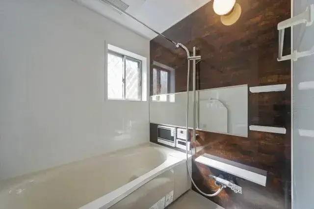 閉鎖感のある畳の和室を、モダンなインテリアで統一した明るく広々としたリビングに変更。古びたキッチンはクラシカルな対面キッチンにリフォームし、家族との料理が楽しめる広々としたスペースに。汚れがつきやすかったタイル張りの浴室も、レトロなタイルをアクセントにしたシステムバスへと進化。快適で使いやすい浴室空間になりました。